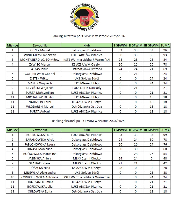 Rankingi skrzatów po 3 GPWiM w sezonie 2025/2026